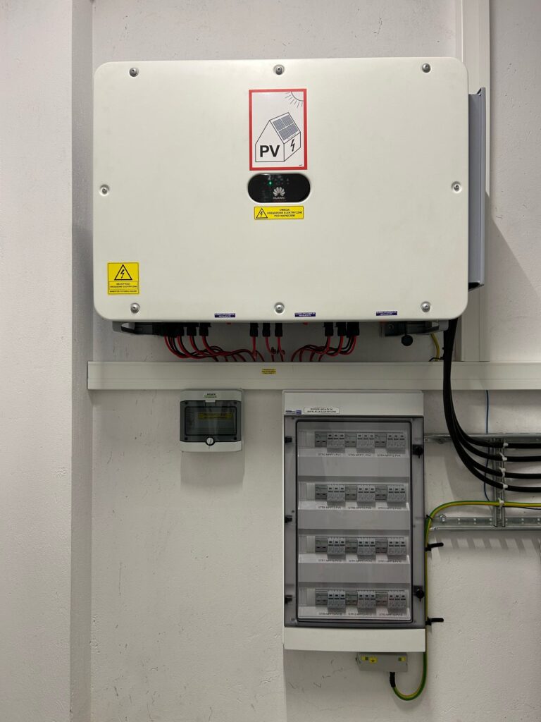 Instalacja balastowa składająca się z 204 szt paneli 500Wp oraz falownika 100kW. Całość zabezpieczona przez wyłącznik PPOŻ ProJoy oraz sterownik telemechaniki e²TANGO.
