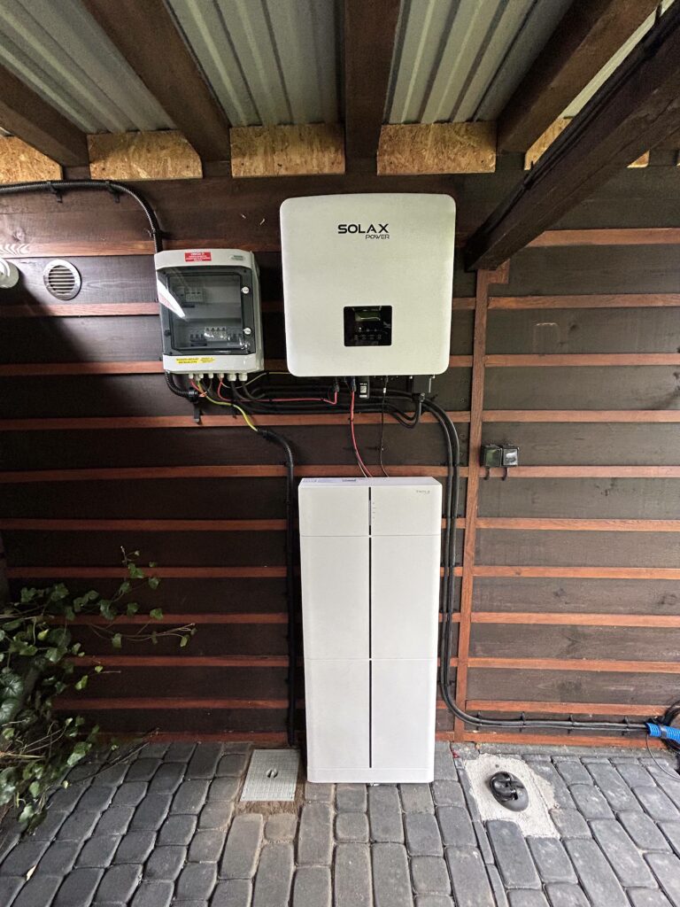 Instalacja oparta o sprzęt cenionego producenta jakim jest Solax. Bateria o pojemności 6kWh pozwala zminimalizować oddawanie do sieci miejskiej nadwyżek energii elektrycznej wyprodukowanej przez instalację a dodatkowo zapewnia awaryjne źródło zasilania.