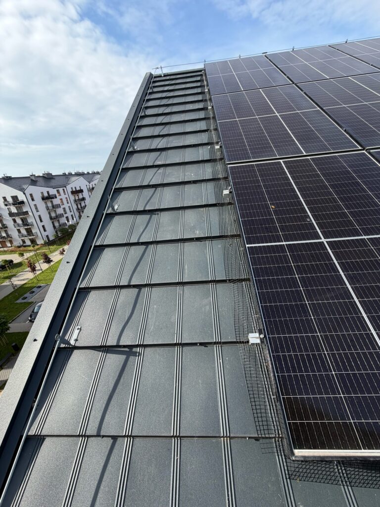 Ze względu na zasiedlenie się gołębi pod panelami właściciel zwrócił się do nas aby rozwiązać ten problem. Zamontowaliśmy siatkę na obrzeżach paneli uniemożliwiającą wchodzenie zwierząt pod panele.