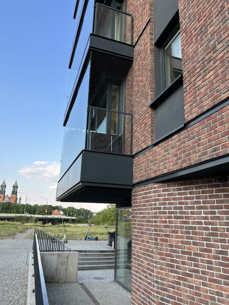 Klimatyzator zamontowany w nowoczesnym bloku mieszkalnym w pobliżu Warty. Klient chciał aby jednostka zewnętrzna jak koryta prowadzące rurociąg oraz przewody nie rzucały się w oczy więc zostały pomalowane na kolor elewacji budynku.